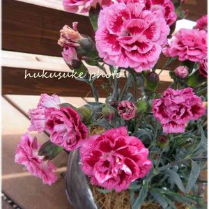 GW中に主人がウッドデッキを作ってくれました(*˘︶˘*).。.:*♡憧れただけに感無量です!とりあえず植物達を仮配置☆ ペチュニア花衣は切り戻ししてまた沢山蕾をつけてくれてます☆彡
