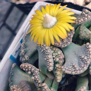 帰宅して確認すると 咲いてました(˙◁˙👐)ぱぁ🌼✨ おそらく全開ではないけど、忘れないうちに投稿しとこ🙇️ 名札なしだった多肉ちゃん チタノプシスの天女かな…?🤫