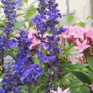 *ペンタスとブルーサルビア* 皆さま、ペンタスは冬越ししていますか⁉️ 寒い間、家の中に入れないと❌ですか❔