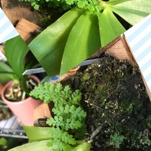 夏の間 お外に出していた胡蝶蘭 水苔に コケ🌱みたいなの生えて来ていたのですが そのまま放置しておりました … 冬の間 成長続け 立派な姿に🌿 コケ…🙅♀️ シダ…🙆♀️⁉︎ 一体何者なのでしょうか❓ どなたか ご存知の方 いませんか?