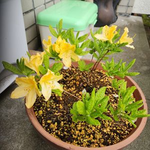 去年裏庭に通じる場所に移植したキレンゲツツジ が元気良く咲いてくれました キバナツツジとも呼ぶらしく迷っています