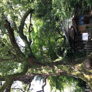 10/29 越生にて。上谷(かみやつ)の大クス。写真ではわかりにくいけど幹回り埼玉一(関東一とも)で全国16 位とのこと。 とても好きな場所で定期的に訪れます。春はウグイスが飛び交ってて天上界か?と思ってしまいます。 去年の夏、強風の後に見に行ったら太枝が折れてて(何tもあったはず)、半年以上そのままでしたが、やっと撤去されてました。樹下への立ち入りは禁止のまま。 でもあんな真下に歩廊あったら下手したら大事故だからね。それに景観も悪いから、いっそのこと歩廊無くして遠くから眺めるだけの方が良いのかも。