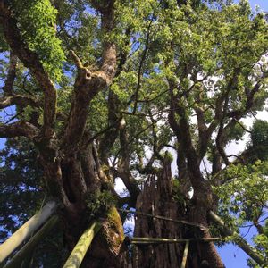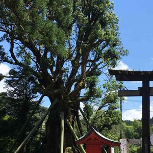 8/9 🤳 南九州市川辺町宮 飯倉神社⛩境内にある大クス🌲 初めて訪ねました🙋♀️ 樹齢 約1200年 樹高25m 幹回り16m 数度の落雷⚡️により木が裂けたため 2本の木のように見えるけど元々1本の巨木です🌲 県の天然記念物に指定💚