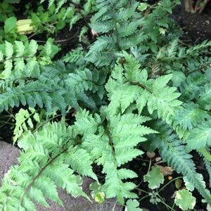 続いてはリベンジ投稿😁♪ 昨秋、我家のシダ類の中では一番早くこのドレスダガーが落葉してしまったので💦 西洋メシダの仲間は沢山ありますが、ドレスダガーは葉っぱが2重に交差していて(右下の拡大写真参照)、チョット人工的な感じというか、幾何学模様のような感じです👀 レースっぽくて涼しげな所が気に入ってます🥰