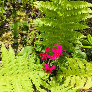 あれ〜こんなお花あったけ⁉️ シダの間に芝桜が入り込んだよ🌺
