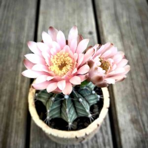 こんにちは✨😃❗ 今日明日はお休み〜☆ 連休なんて久しぶりだぁ〜🎵🎶✨✨ 朝は雨がちらつく曇り空だったのが、凄くいい天気☀️✨ 歯医者さん終わってショッピングモールをプラプラと🎵✨ 又、作りたい発想が浮かんできちゃった😆🎵🎶✨ 帰宅したら、ギムノちゃんが咲いてくれてましたぁ〜😃♥️✨✨ 好きだなぁ〜サボテン♥️✨✨