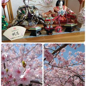 少し遅いおひな祭りに来ました🎎 静岡の兎山公園🐰 青空の河津桜満開です。🌸💕