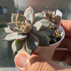 エケベリア・セクンダ カマノイ プエブラさんが美しいです😻💗 ちょっと光の当て方が悪くて 傾いてしまいましたが 其れを差し引いても 色白で縁と爪ちゃんの 色合いが絶妙です😻💕💕