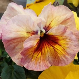💚 ウィンターパーティ バニラスカイ 💚 とっても大きなお花のパンジーです。 最大で8.5×7cmあります😳 名前に惚れて買ったポット苗、咲いてたお花は普通のパンジーくらいでしたが咲いたら巨大パンジーになりました😅 色はクリーム色と空のような色でいいでしょ😊