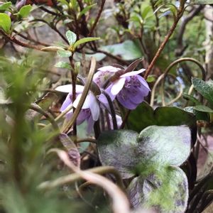 雪割草(三角草)、一番咲き💜 咲き始めはこんなに紫色なのね....🧐 ツツジの根元にひっそりと生息しているので、写真撮影が難しい💧 この後、花が咲き揃うと一斉に太陽の方向に顔を向け、花色も白っぽくなります☀️