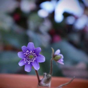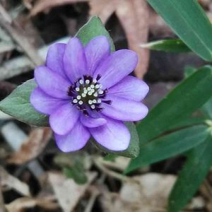 庭の雪割草 青紫のような色です✨