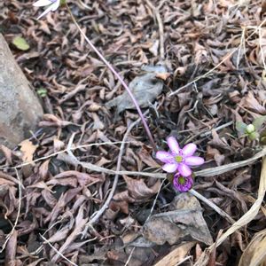天神山城趾の春② 「雪割草」 花ではなく、周りの落ち葉にピントが合ってしまい残念な結果に😂