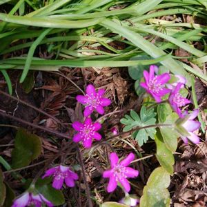雪割草 スハマソウ 林床に突然現れた鮮やかな色合いに驚く。同じく雪割草と呼ばれるミスミソウのように葉が尖っていないのでスハマソウかと思うが交雑かもしれない。 関西の山々にはケスハマソウも自生するというが、出会ったことがない…