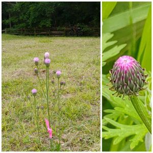 これはノアザミかな?→キツネアザミと教えて頂きました🙏 れんげ畑でいい感じでした😊 昨日の散歩で見つけましたよ🎶