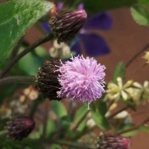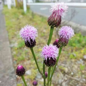 雑草か何かわからず冬から大事に育ててみました。キツネアザミでした。でもよくみると可愛い花です。