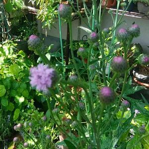 お弁当を買いに出た時に遭遇🤗 「そのピンクの髪👩🏻🎤、とかしたら」 ところで、貴女はどなた? →キツネアザミ みたいです
