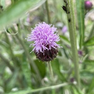 キツネアザミ🩷 たぶんそうだと思います🤔 トゲがないのでアザミのようでアザミじゃない。 キツネに騙されたような花だ!と牧野富太郎先生が名付けたそうです⚘⚘⚘ 確かにアザミに似てる紅紫色のモフモフ花だけど、私が知ってるオニアザミよりお花が小さくて可愛い気がします (⑉• •⑉)‥𖹭トゲナシ♡