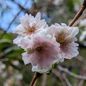 こんにちは♪ 新宿御苑の散策 🌸小福桜(コブクザクラ)🌸 バラ科サクラ属 開花期10月上〜3月上 冬ざくらの一種 花一輪につき2〜3個の🍒さくらんぼがなるという特性を持っている、これを子宝に恵まれた物として「小福桜」と名付けられた