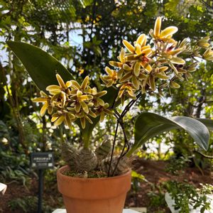 🏷️2のつく日は斑入りの日 ☆ アサバソウ ① 葉の模様に惹かれます ② 花も咲いてます ③ 奥のカカオの実が色を添えます 新宿御苑にて 11月7日