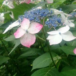 新宿御苑 脇の小路にて 中へ入る時間はありませんでしたので~~ 半夏生 紫陽花 紫は何かな? 小さい白の花は西洋シナノキ 都会のオアシスには今日もたくさんの人達 *トウフジウツギと教えていただきました。ありがとうございました🎵