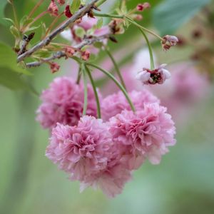 🏷️木曜日は木 🏷️木曜日は桃色 新宿御苑にて 4月18日 八重桜 3種類、そして……。 ①② 梅護寺数珠掛桜 (バイゴジジュズカケザクラ) ③ 関山(カンザン)かな? ④ 松月(ショウゲツ) ⑤ 椿の木の前で見ました。