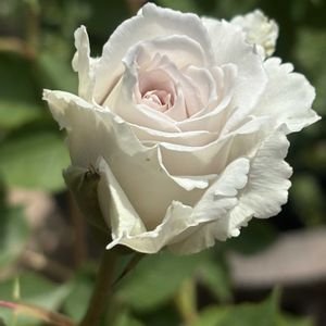 白薔薇ガブリエル🌹✨ 今年挿し芽した子なんですが、放置していたら、この暑い中一輪咲いてました🌸✨✨ とても繊細な薔薇だと思っていたけど、割と丈夫? しかし、夏にお花を咲かせてよかったのかしら(;´・ω・)ウーン・・・ 2枚目は親株…といっても、plumrinkoちゃんに挿し木したのをいただいたものです🌹✨ …毎日のように各地雷雨⛈などありますがお気をつけて🖐✨
