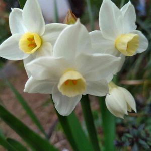 水仙 スノーベイビー👶❄️ ミニサイズの水仙さん💞 中央のこの子だけ、ラッパが黄色でした😚💕 もうちょっと花びらが丸っこいのを想像していたけれど、シュっとしてるのね💡 ミニ水仙の定番、テタテート(ティタティタ)とは違った魅力ね👍💗