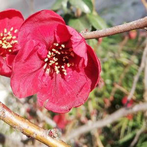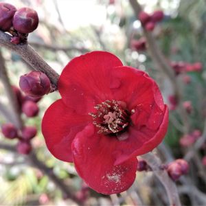 おはようございます🌸 庭に先日投稿した垂れ梅と、もう一本梅の木があります🌸 割りと大きなお花が咲き始めました🌸 枝は少し赤みがあって、蕾は淡いピンクです🌸 満開になるのを楽しみにしています🌸🌸🌸