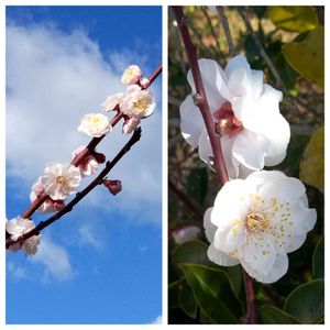 我が家の梅も漸く咲き出しました♪ まだ数える程です ⚪️⚪️⚪️⚪️⚪️