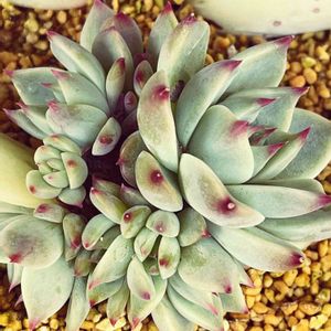 葉挿しの「クラウディア軍団」 とっても葉挿し率の高い子で、ワチャワチャ育っています🎶🎶 あまり大きくならず、木立ちでまん丸になって可愛いんですよ〜❣️ 秋には血班も現れて、なんともお上品に変身✨✨✨ 昨年、ほとんど里子に出してしまったので、また順調に増えるといいなぁ😊