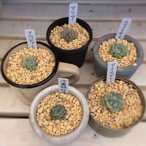 植え替えて、そろそろ1週間😊 今日はお水あげていいかな〜❓🙄 りーさんからのチビ苗ちゃんです💕 早く大きくなぁれ😆✨ (アイスグリーンちゃんだけサバ缶でごめんね〜😅大きくなったら植え替えてあげるからね🤗)