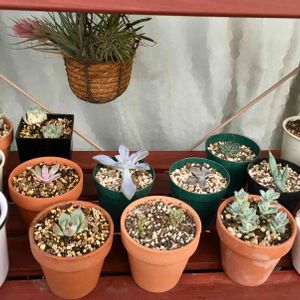 右手の紫色の苗は、去年ロウルサンコさんで買った子。名前は不明ですが最近紫色に色付いてきた❤️ その他は、今年出来た葉挿しっ子達をちまちま 流木風のコンクリ鉢は、義母からの誕生日プレゼントでしたー