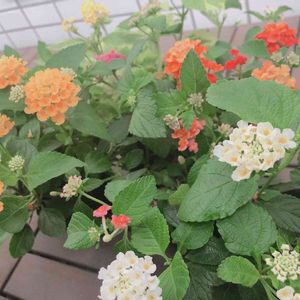 ベランダのランタナ鉢植え🌱かわいい蕾達が次々と顔をだします。ホワイト・黄色・ピンク・オレンジ・赤など明るい小さなお花がまんまるです☺️🧡