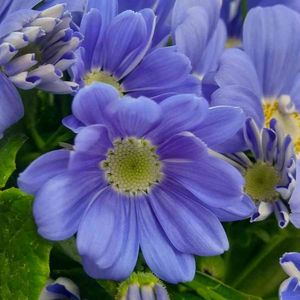 おはようございます☀ サイネリア 爽やかな色の花びら💙が キラキラ✨ 元気な笑顔で 咲いていました💙✨ 色々な表情で 元気いっぱい✨ 🏷水曜日は水色 🏷いつも心に太陽を に参加させてくださ〜い✨ 今日も素敵な1日を〜✨ 💙🌿✨💙🌿✨💙🌿✨💙🌿✨