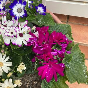 保育園の玄関先のお花 サイネリアが色とりどりで、 可愛い寄せ植え❤️💕 さっき、パ〜っと小雪が舞っていました。 止んだけど、ちょっとびっくり🤏 日向ぼっこの花を軒下に移しました。 夜、冷え込むな〜きっと。😮💨 晩御飯はお鍋にしよう🥘‼️ 決まり👍 では又明日💪🎶🤳❣️ 👋🏻👋🏻👋🏻🥘☕️💐♨️👍💝