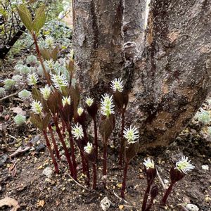 玄関アプローチ、ヤマボウシの根元、勝手に生えて賑やかなヒトリシズカ 昨年2度の農薬散布でも、虫が絶えなく、半分の樹高に切られた🪚✂️ソメイヨシノ こんな風に5ケ所で咲いてくれました♪