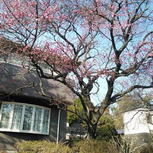 紅梅 お散歩道のお家の大木