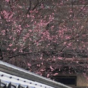 2月中旬、茂木町で見かけた、瓦塀を越えて、見てと訴える様な、ピンクの可愛い💕紅梅の花🌸🌸🌸‼️