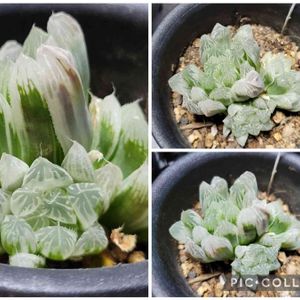 新しくお迎えしたハオさんは徒長気味ですが、とても綺麗な模様?で気に入ってます😊 アイススプライトの名前が付いてたけど、ピリフェラ錦と同じなのかな?🤔 とりあえず分けます!