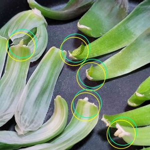ハオルチアの葉挿しっ子です。 段々葉っぱが大きくなってきました🌱 どちらも2枚目が出ました👍 そしていっちょ前にギザギザも ついてて可愛い🤭 しかし、全く発根しないんだけど…(˙˙*)? このままでいいのかしら。 それとも土に埋めた方がいいのか謎。。 もう少し様子見してみます。 どなたかこうした方がいいよ というのがあったら教えてください🙏