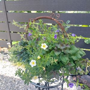 園芸店の店頭で レディをはじめ素敵なパンビオが たくさん並んでいたのですが あれこれと悩み過ぎて手が出なかった 𐤔𐤔 ビオラ沼入りしたきっかけの子 フレアブルーを一つだけお迎えしました(o´艸`) 何年振りかな〜 コロナ前だったかも〜✨ 吊り下げタイプの お家型の雑貨が半額になっていて こちらもお迎え どうやって使おうか これから考えます(*´艸`*)