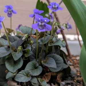 今日の花🌼スミレ 昨年の4月の写真です😊 毎年鉢から3月に葉が出てきて、花をつけてくれていました。 今年は葉が無いので、昨年の猛暑豪雨でダメになってしまったかもしれません👼😢 1枚目🤳細長い葉のスミレです。 植えた記憶はないので、自然に増えたようです。 2枚目🤳宿根ビオラ ソロリアフレックルス 吹っかけスミレの別名を持ち、霧吹きで吹いたような模様が特徴とのこと。どこかのお店の宿根草コーナーで見つけました👀 3枚目🤳花は無いけど、ニオイスミレの葉っぱ🌿かなと思っています。 4枚目🤳は宿根ビオラ ラブラドリカです。冬は黒葉ですが、4月だと葉は緑になっています。 ちっちゃなスミレたちもかわいいですね😍💕