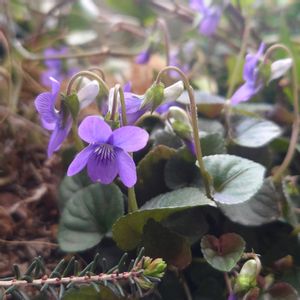 GSの今日のお花 スミレ ① 昨年庭の片隅で見つけたスミレ アオイスミレかマルバスミレ? 撮影2025/3/14 (日付今年に訂正しました。)🙇♀️ 初夏に掘り上げて鉢植え にし、その後ずっと枯れ ずに青葉を保つ。 ②同じスミレ ③同じ 蕾 葉の形 撮影2025/3/9 この頃の葉っぱは丸い形 だと思ったのだけど、咲 き始めたら葉先が少し尖 っているみたい。 追記 この子はタチツボスミレと教えていただきました💜 ④ビオララブラドリカ 零れ種育ち それこそ庭のあちこち 別の鉢の中とか 繁殖力旺盛💜 ⑤たぶんエイザンスミレ? この子も昨年同じ椿の下で見つけたのですが、皆様からエイザンスミレでは?と教えていただき、その後鉢上げして愛でておりました。 そのまま地植えだといつなんどき母上に抜かれてしまうか恐怖しかなかったので… コワイコワイ(∩´﹏`∩) 年末に地上部全て枯れてしまい諦めていたのですが、3月初めに新芽が出てきて復活のオーラを放つ。⭐️ picは3/9撮影 過去pic 2024/4/2