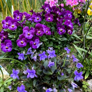 2024.4.1 ①2年目のブルンネラ・ジャックフロスト🩵 ブルーの小花が去年よりもたくさん😍💕 ②ビオラ・ラブラドリカ💜 零れ種であちこち増えて、強い子です💪✨こまめに零れ種の赤ちゃん🌱を回収しないと、増えすぎて大変です😂