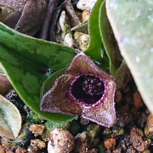 ヒメカンアオイ タマラシャ(姫寒葵 玉羅紗、玉霞) つぼみの時期が長かったけれど、ようやく小さい小さいお花が咲きました。 冬の間に葉っぱがたった二枚だけに~😥早く新芽出てきて欲しい🌱