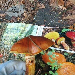 アカジコウ 赤い傘と黄色い管孔、柄の対比がとても美しいです。