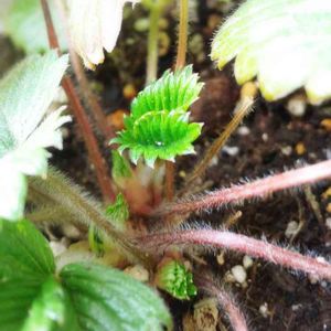 春を感じる新芽シリーズ①🌱 玄関前のワイルドストロベリーです😃 真冬の寒さで若干縮こまっていましたが、先週からの暖かさで新芽がでていました✨ なんだかシダっぽいですね🌿 以前伸びていたランナーは結局だめになっちゃいました😖 春には鉢から溢れるくらいランナーを出してくれるのを期待してます☺️