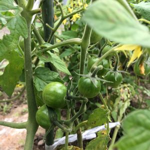 やっと実がついたプチプヨトマト🍅赤くなるまで間に合うかな?もう10月も半ば 霜が降りれば終了😑
