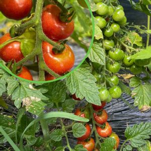 野菜部👩🌾 🍅プチプヨが赤くなりました。 他のトマトには無い輝き✨ぷよぷよして、果肉はゼリーのような食感です❣️ 去年の実から種を採り、育てました🤗 去年と同じに出来ている気がします🎶