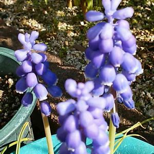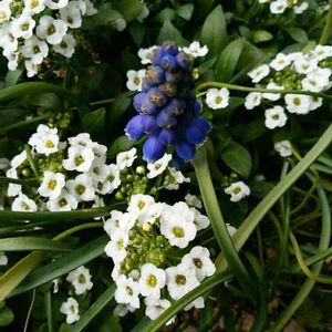 白い花に交じって咲いていた紫色のムスカリーかな、たぶん、我が家で見たより花短めだけど我が家の花も二月末か、咲き出してたし